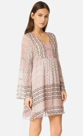 Rebecca Minkoff Pink Redland Long Bell Sleeve Patchwork Bohemian Fit and Flare Short Mini Dress To... Show more