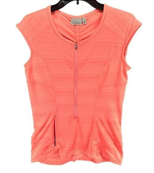 Athleta Pacifica Tank Top Womens Size M Coral Half Zip Pocket Ruched Back Stretch Beach Excellent p... Show more
