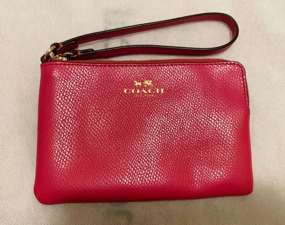 coach pink leather wristlet wallet clutch. In excellent like new condition Size approx 6” 4”