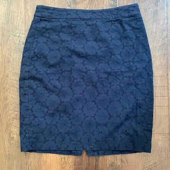 Authentic J. CREW The Pencil Skirt, blue lace, fully lined, size 0P Freshly laundered in gently wor... Show more