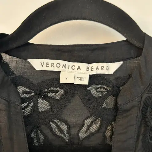 Veronica Beard Trina Embroidered Midi Dress in Black; excellent condition Veronica Beard "Trina" dress with floral embroidery V neckline; button front, long sleeves, self-ties at waist, hem falls below the knee, ramie, dry clean Approximate measurements: Chest: 36" Length: 48" Waist: 28" Sleeve length: 21" *This item may be tagged with a security ribbon and unique ID number to prevent fraudulent returns. It can easily be removed with scissors. Once the ribbon is removed, the item will no longer be in the same condition as it was sent. Additional photos and video of packaging process may be taken prior to shipment. Tags: embroidered, lace, minimalist, designer, premium, quiet luxury, summer, preppy, effortless, Parisian, breezy, European, vacation