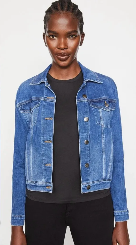 FRAME Le Vintage blue soft stretch denim jacket. Size XS Mid indigo washed cotton, collar with a but... Show more