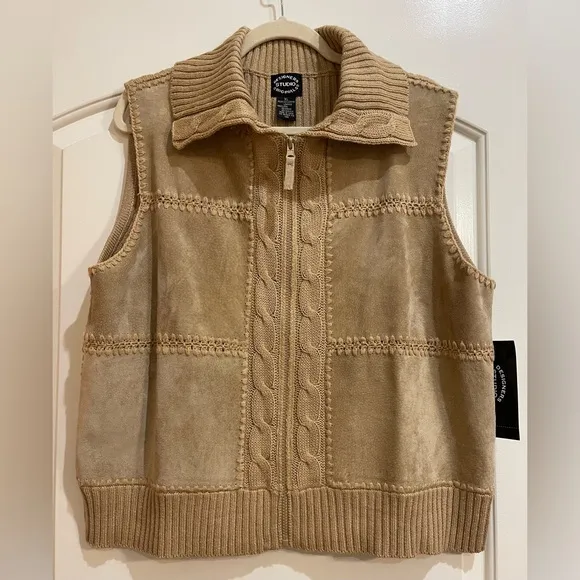 Designers Studio Originals Women’s Tan Suede Leather Cable Knit Vest Size XL. - $50 (72% Off Retail) New With Tags - From Roxann