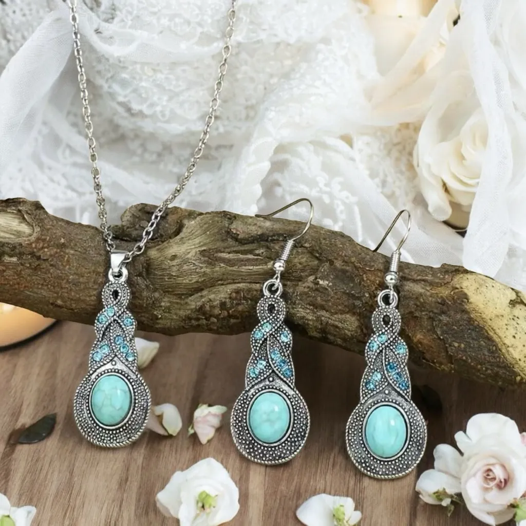 Bohemian turquoise Inlaid necklace & earrings set faux fashion jewelry‎ - $13 New With Tags - From Mon