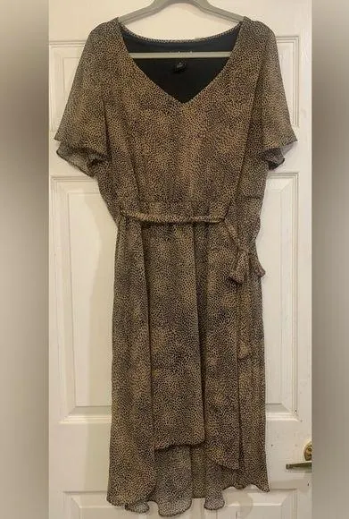 Lane Bryant Animal Print Dress. Brown with black specs throughout the dress. Flowy sleeves, peek a b... Show more