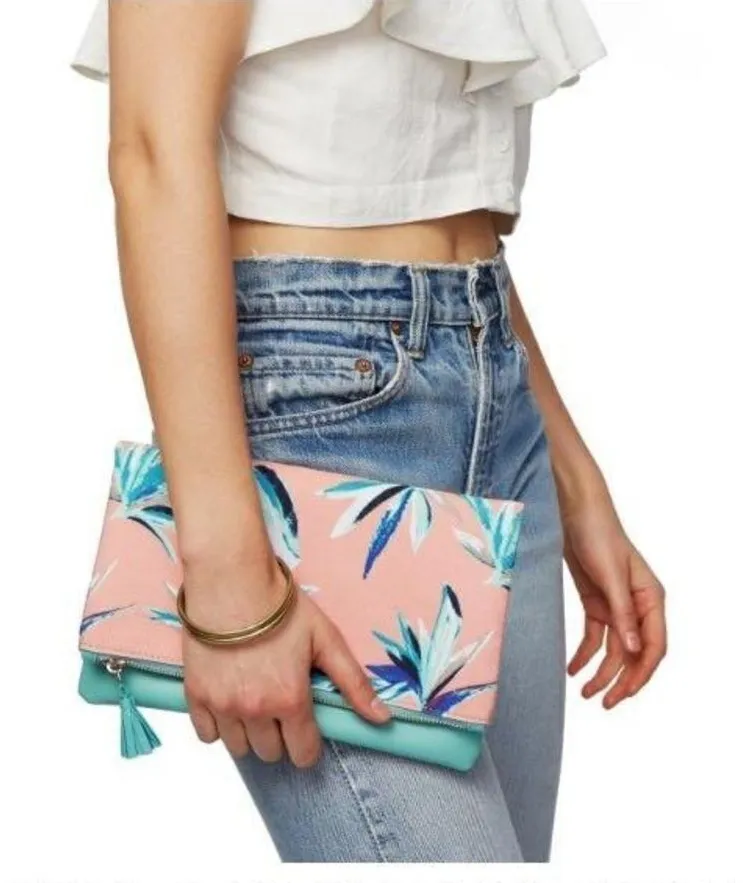 Rachel Pally Mint & Peach Tropical Clutch, NWOT. Beautiful clutch for your next vacation or summer fun! Featured by FabFitFun! So cute! Floral, tropical, spring, summer, designer, vacation, cruise, Easter, Mother’s Day