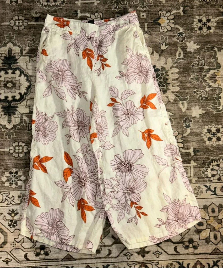 RACHEL Rachel Roy Floral Linen cropped wide leg Pants Orange Size L - $25 - From Kimberly