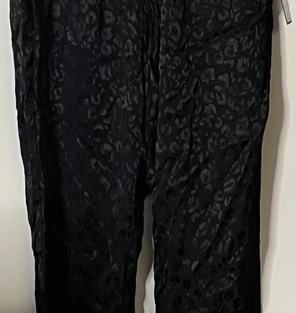 Rachel by Rachel Roy Womens Size Medium Black Animal Print Drawstring Pants. Stylish black pants with a subtle leopard print design. Perfect for a chic look. Perfect for a casual day or dressy evening. Beautiful pants that are 100% viscose. Retail: $89 BIN H