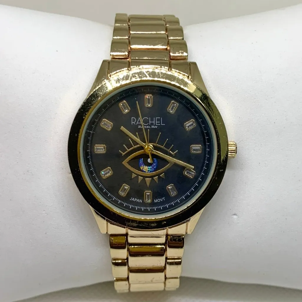 Rachel Roy third eye dial gold tone watch women 35mm round black dial running - $25 - From Watch