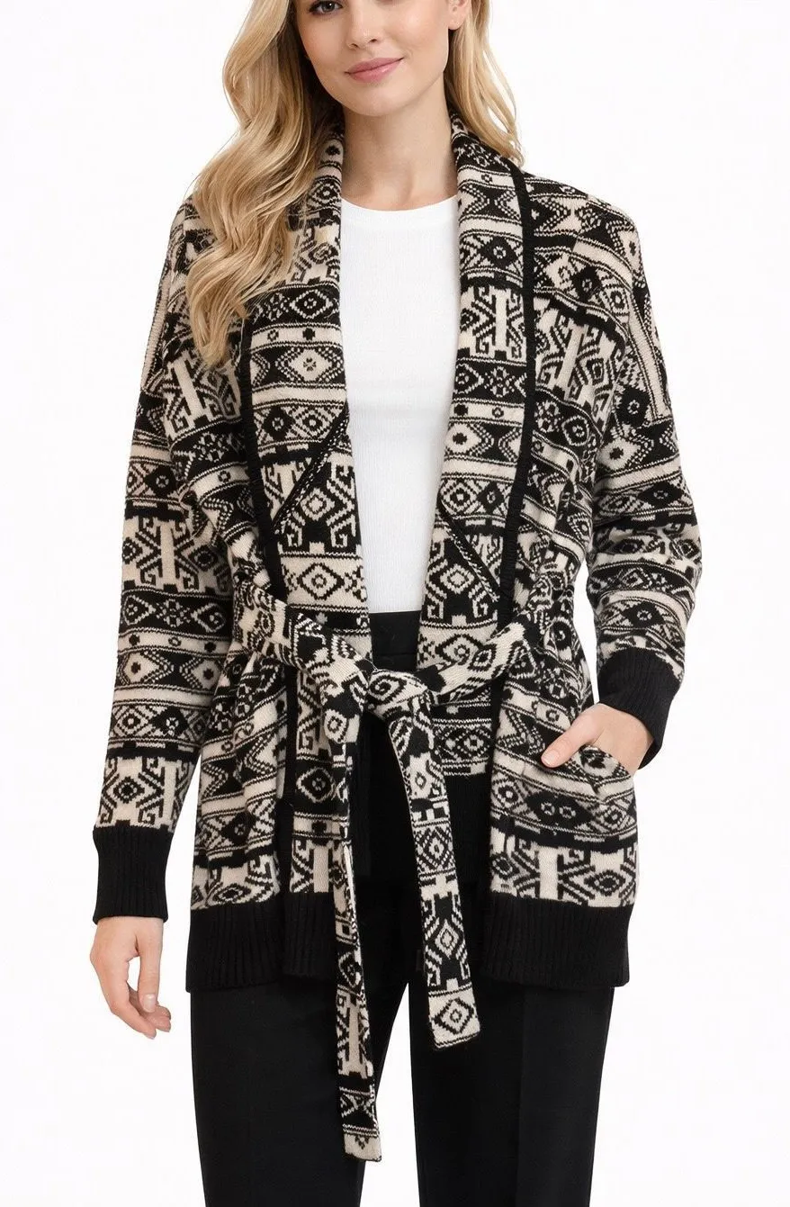 Brand: Rachel Zoe Description: stretch polyester Aztec southwestern printed draped tie waist cardig... Show more