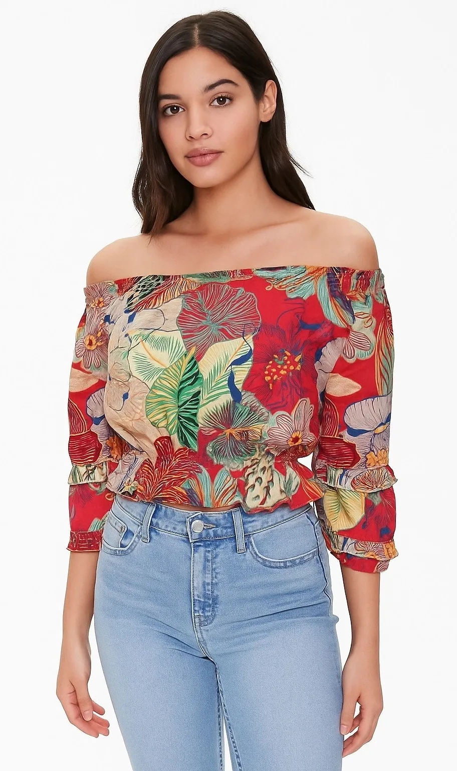 Rachel Zoe Colorful Tropical Floral Off the Shoulder Top Blouse Size Small. New with tags. -Red, or... Show more