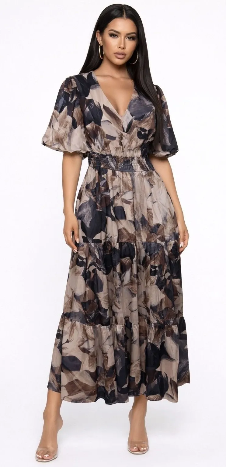 Rachel Zoe floral print midi dress with flutter sleeves and a flattering smocked waist - good condit... Show more
