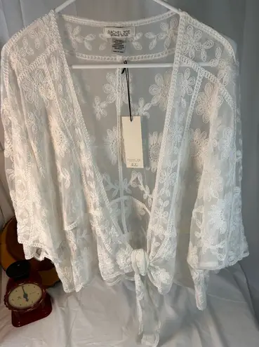 Chic ivory lace and crocheted cover-up by Rachel Zoe. Features delicate floral embroidery. NWT One... Show more