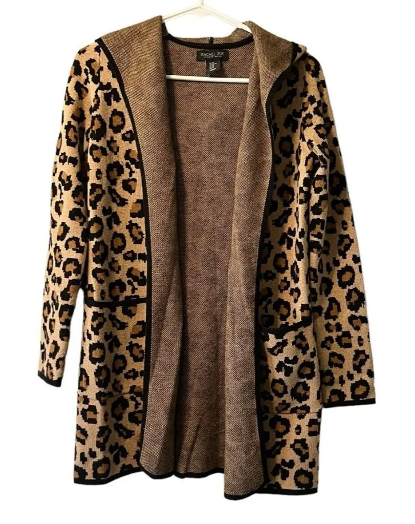 This duster/cardigan is preowned and in great condition! Rachel Zoe Leopard Print Hooded Duster... Show more