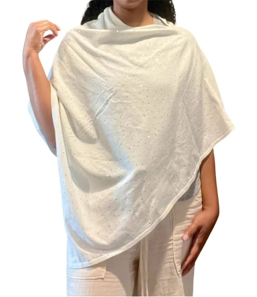 Rachel Zoe White Rhinestone Embellished Poncho Soft Cozy Knit Topper One Size Stylish white ponc... Show more