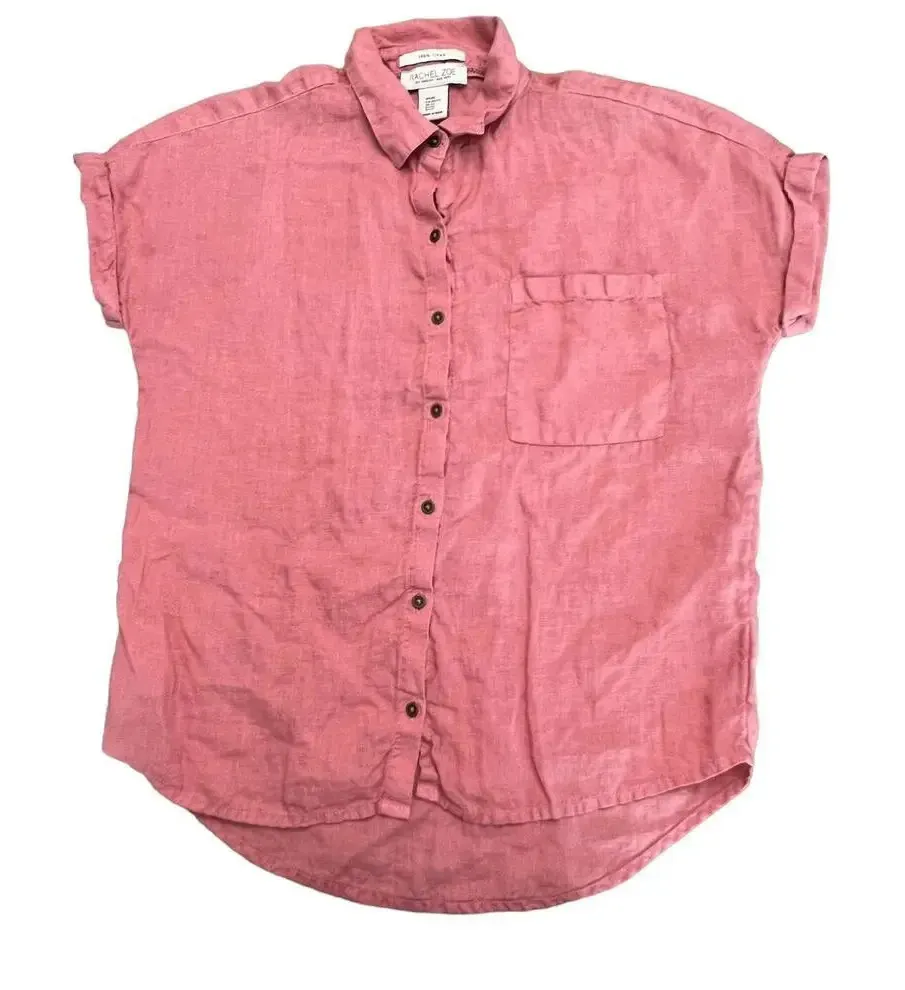 Rachel Zoe Women's XS Pink/Dusty Rose 100% Linen Short Sleeve Button-Up Shirt All orders ship next... Show more