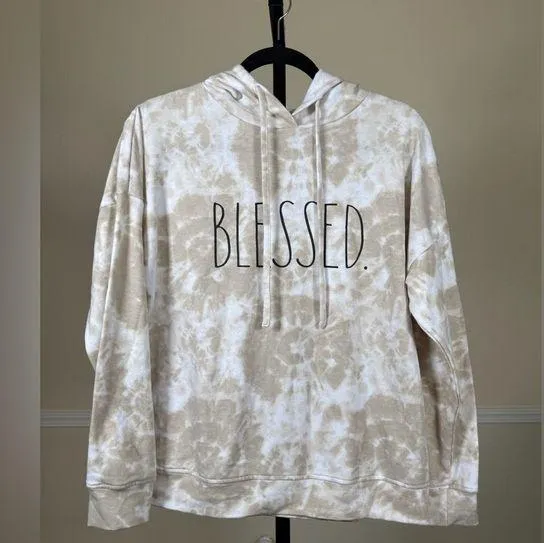 Rae Dunn Blessed Hoodie Tie Dye Oversized Aesthetic Cozy Loungewear Neutral Preowned and in excelle... Show more