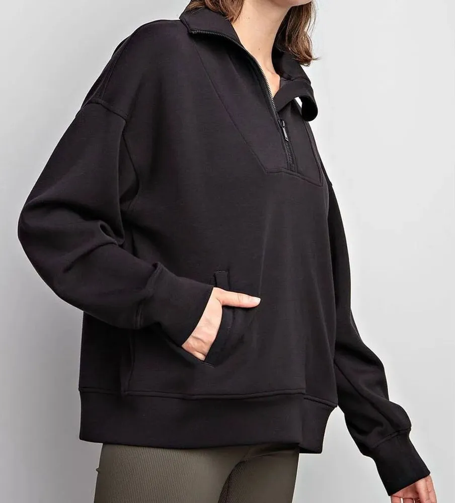 Stay comfy and stylish in this Rae Mode black half-zip pullover in a Women’s Size Small. Features a ribbed oversized collar, ribbed half-zip detail, and relaxed fit — perfect for lounging, errands, or layering. Soft, cozy, and great quality as always from Rae Mode. Condition: Excellent — no flaws found. Color: Black Size: Small Style: Half-zip / Ribbed / Oversized pullover ✨Ships next day! ✨Open to offers ✨Pet-friendly home, non-smoking environment