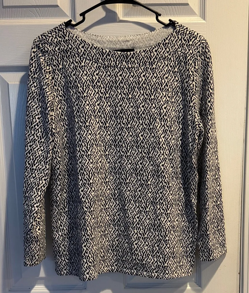 Rafaella Long Sleeve Women's Boat Neck White Navy Cross Tiles Print Top Size L Size L - $20 - From Rachel
