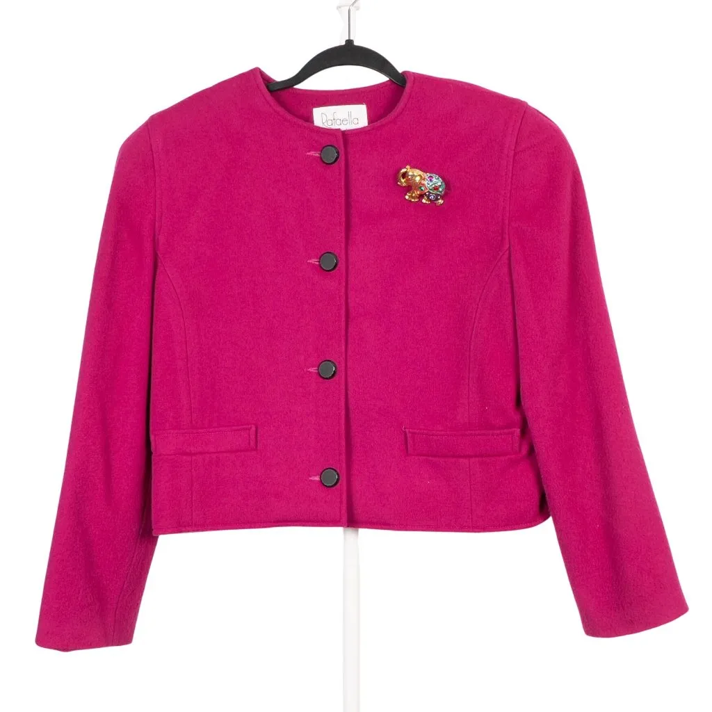 Size: Womens 4 Measurements are approximate and taken flat. Underarm to Underarm 20 in Sleeve Length 24 in Length 20 in There are no stains, tears, or rips. Please see the pictures. All pictures are of the actual item. Colors may vary slightly due to camera limitations and monitor settings. • 80% Wool, 20% Nylon • Shoulder Pads • Made in Italy • Dry Clean Only Pre-Owned Good