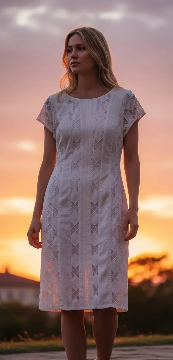 Step into elegance with this charming Rafaella dress. The intricate lace overlay creates a beautiful, textured effect, perfect for making a subtle statement. The fitted silhouette gracefully accentuates the figure, while the classic midi length adds a touch of timeless sophistication. The dress also features a comfortable lining and a discreet zipper closure, ensuring a seamless and flattering fit. Picture yourself wearing this dress to a garden party, a cocktail event, or a sophisticated business meeting. Measurements: • Sleeve: 8 inches • Bust (pit to pit): 20 inches • Length: 41 inches Style: Pencil Dress, Sheath, A-Line Dress Length: Midi Department: Women Sleeve Length: Short Sleeve Pattern: Solid Occasion: Party/Cocktail, Formal, Workwear, Business Material: Polyester Blend, Nylon, Cotton Blend Neckline: Round Neck Theme: Classic Fabric Type: Lace Season: Spring, Summer Sleeve Type: Cap Sleeve Keywords: Rafaella, White Dress, Lace Dress, Midi Dress, Size 12, Cocktail Dress, Party Dress, Career Dress, Elegant Dress, Womens Dress, Formal Dress, Fitted Dress, Classic Dress, Summer Dress Box M
