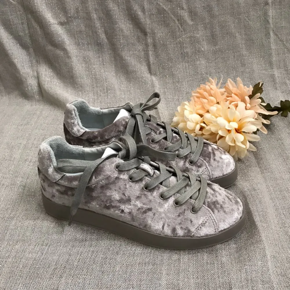 Light olive green/grayish color. Described online as Dove color. Round toe. Lace up 1”platform sne... Show more