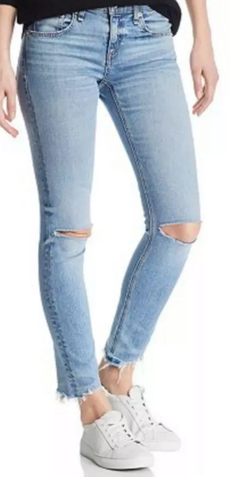 Rag & bone Dre Capri crop distressed ripped knee raw hem Halsey mid rise boyfriend ankle jean size 2... Show more