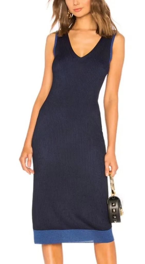 Rag & Bone Size small women's US Style: Cora Midi dress in stretchy ribbed fabric that is navy blue... Show more