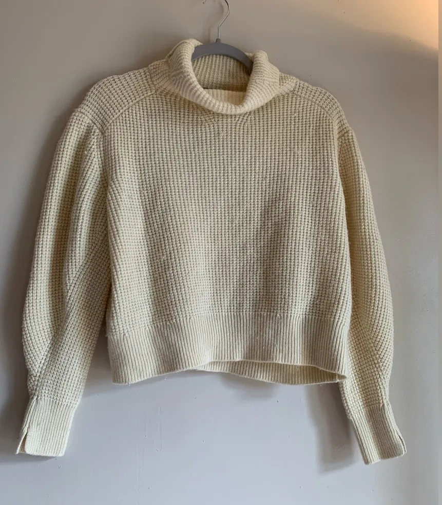 good condition Elegant cream cowl neck sweater. Soft knit texture. Ideal for layering.