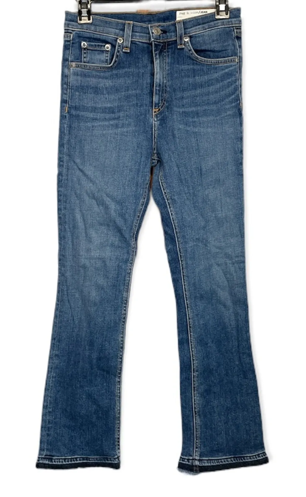 Rag & Bone Hana High Rise Slim Fit Cropped Bootcut Fringe Hem Jeans Croyden wash (dark wash) High ri... Show more