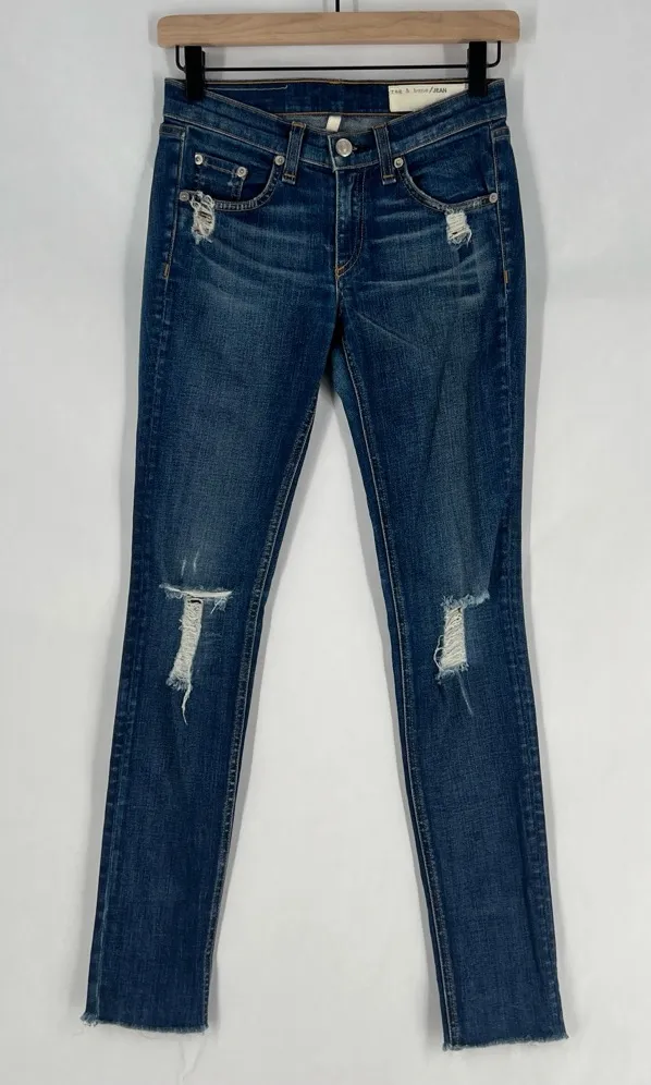rag & bone Medium Wash Blue Distressed Ripped Denim Cutoff Skinny Jeans Size 24 Chic dark blue sk... Show more