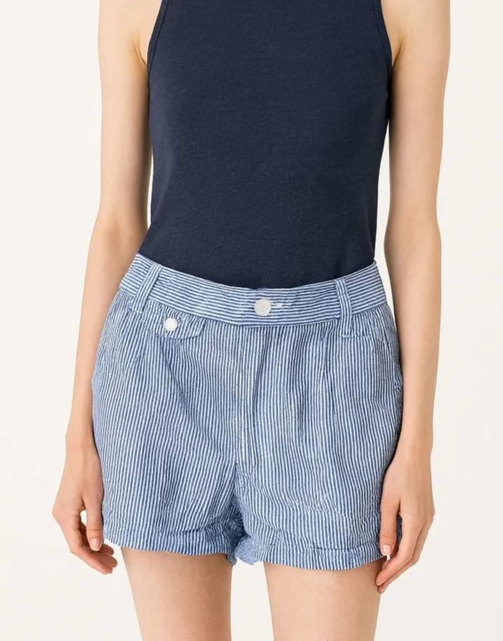 Add a crisp, preppy touch to your warm-weather wardrobe with these Rag & Bone blue and white pinstri... Show more