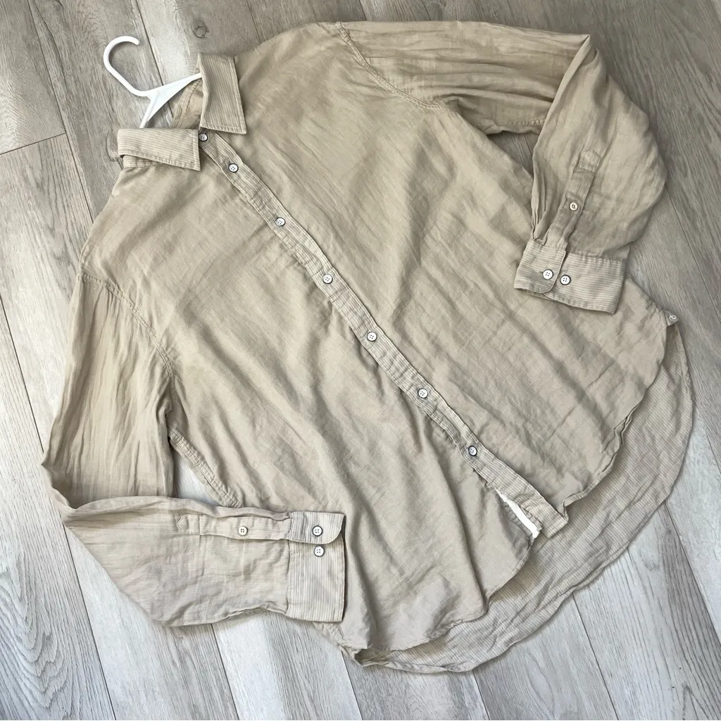 rag & bone Gauze Button-Up Shirt in the color Beige. Collared, button front, long sleeve, curved hem... Show more