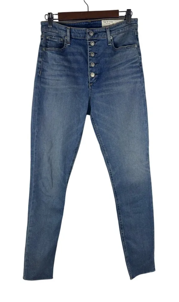 Rag & Bone Nina High Rise Button fly Skinny jeans in the color name Fire Island. These jeans are in... Show more