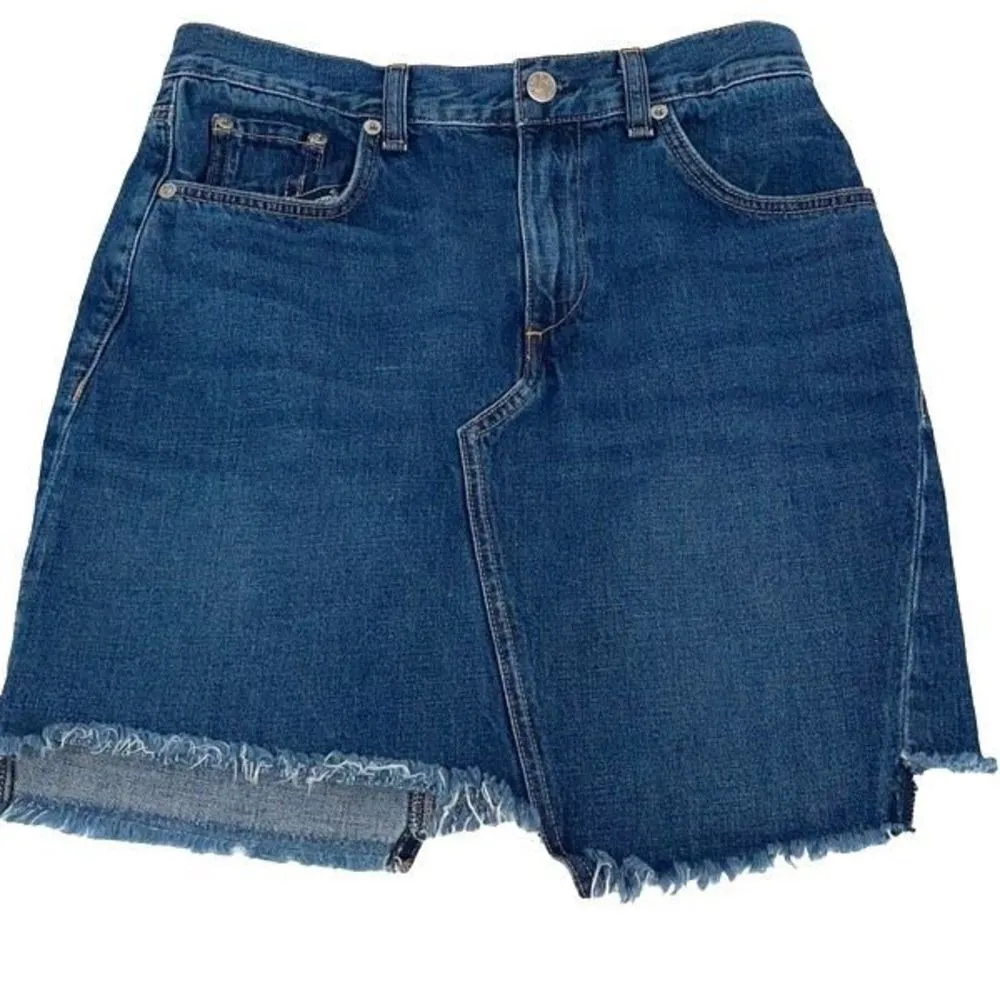 Description: Rag & Bone Womens Jean Skirt Straight Denim 100% Cotton 5 Pocket Frayed Hem Zip with Bu... Show more