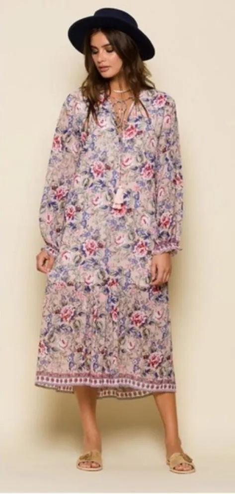 anthropologie RAGA victoria Floral Lined Long Sleeve Drop Waist Midi Dress Multicolor M Size: Mediu... Show more