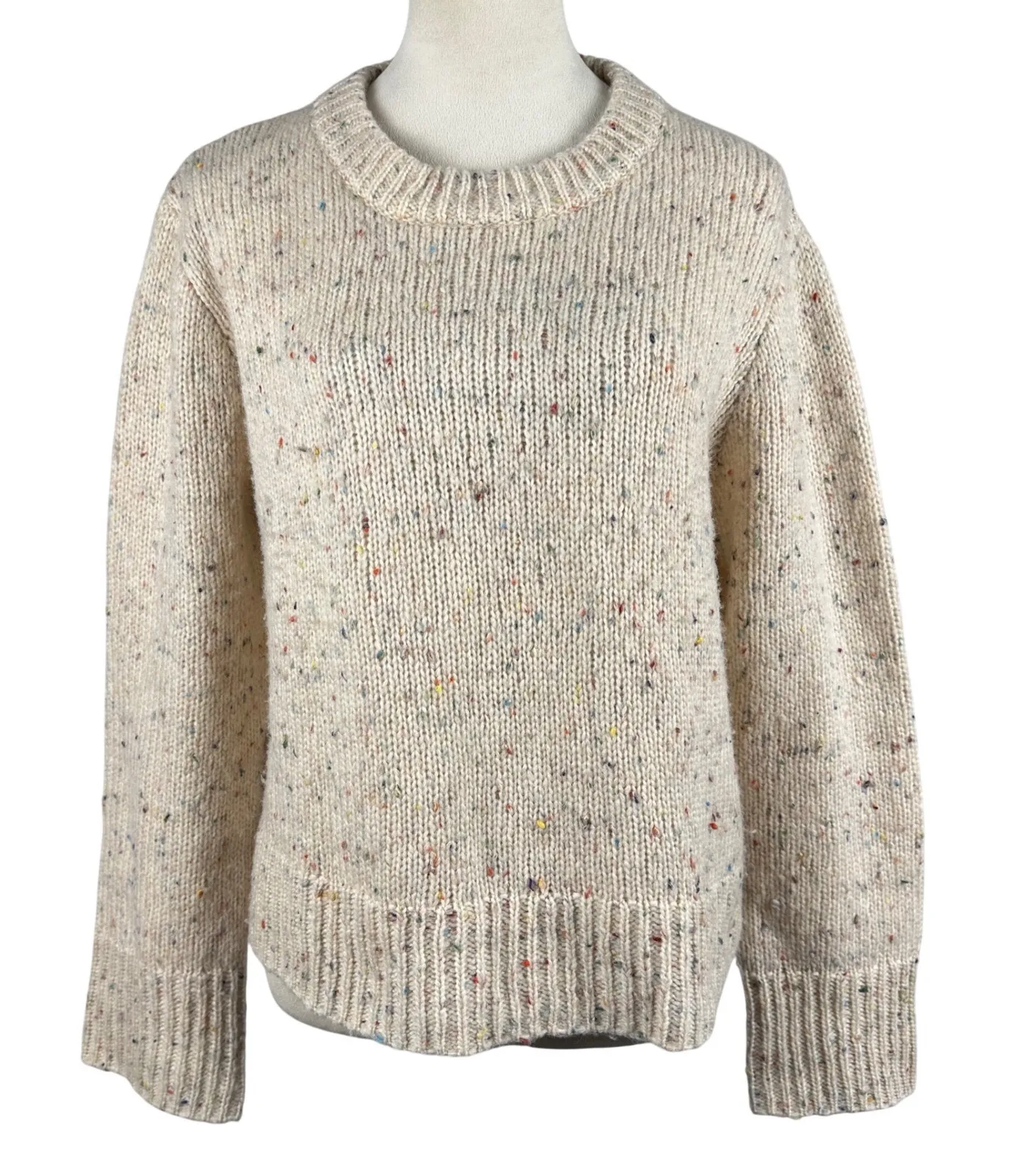 Embrace cozy sophistication with this delightful Rails Delia sweater, a charming addition to your wardrobe. Its creamy hue is beautifully speckled with a playful confetti of colors, adding a touch of whimsy to its classic crew neck silhouette. The soft knit feels wonderfully comforting against your skin, promising warmth and effortless style. The ribbed cuffs and hem provide a polished finish and ensure a flattering fit. This versatile sweater is perfect for casual brunches, cozy evenings by the fire, or layering under a chic jacket for a stylish outing. Gently used. Keywords: Rails sweater, Delia sweater, Cream confetti knit, Crew neck sweater, Long sleeve sweater, Cozy knitwear, Women's sweater, Size medium sweater, Textured knit, Everyday essential, Casual sweater, Layering piece, Comfortable sweater, Chic knit