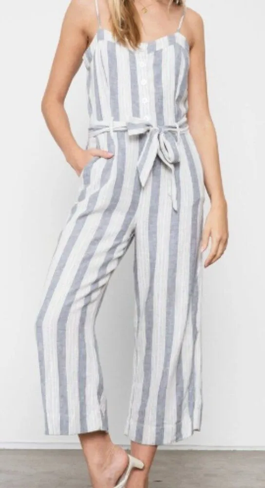 Stylish striped jumpsuit with a button front. Features adjustable straps for a perfect fit. Rails Jumpsuit Womens Size XS Harper Laguna Stripe Linen Wide Leg Contemporary Features - thin adjustable straps - linen blend - has belt loops, missing original belt - faux button front - v neckline - back zipper closure - wide leg Flat measurements Waist: 13.5 inches Rise: 31 inches Inseam: 26 inches Excellent pre-owned condition Comment questions, I'm happy to help. All items are steam cleaned Check out my closet! Bundle & save natural breathable lightweight beach coastal lagom lagenlook contemporary neutral preppy casual
