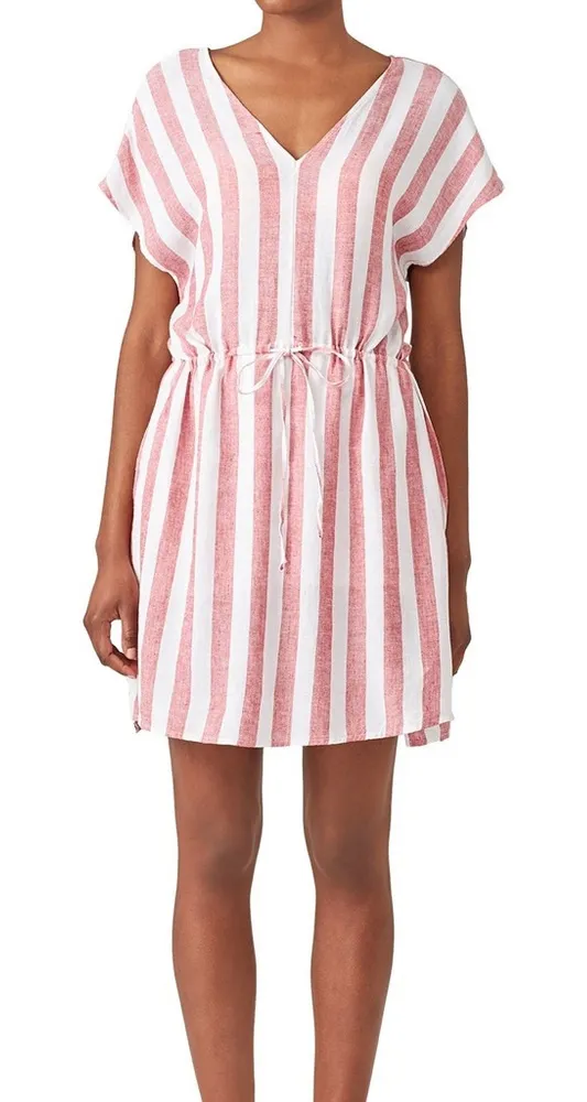 rails wren drawstring waist dress seville stripe size small pink & white striped mini dress with ad... Show more
