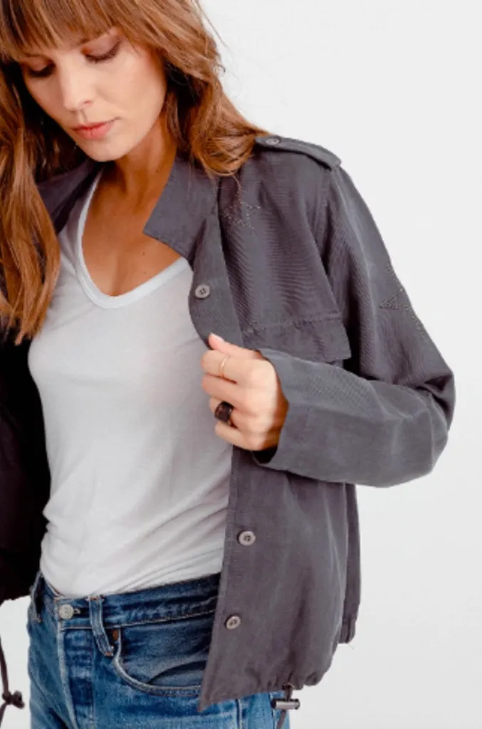 Rails Rowen Jacket Dark Grey With Star Embroidery Size XS Linen Blend Utility Gray - $35 - From Kerri