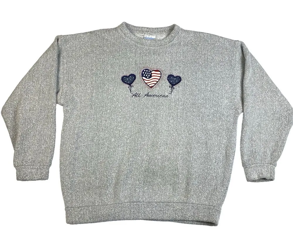 Americana USA Vintage Sweatshirt Women's Size Large Gray 4th July All American 24"x26"