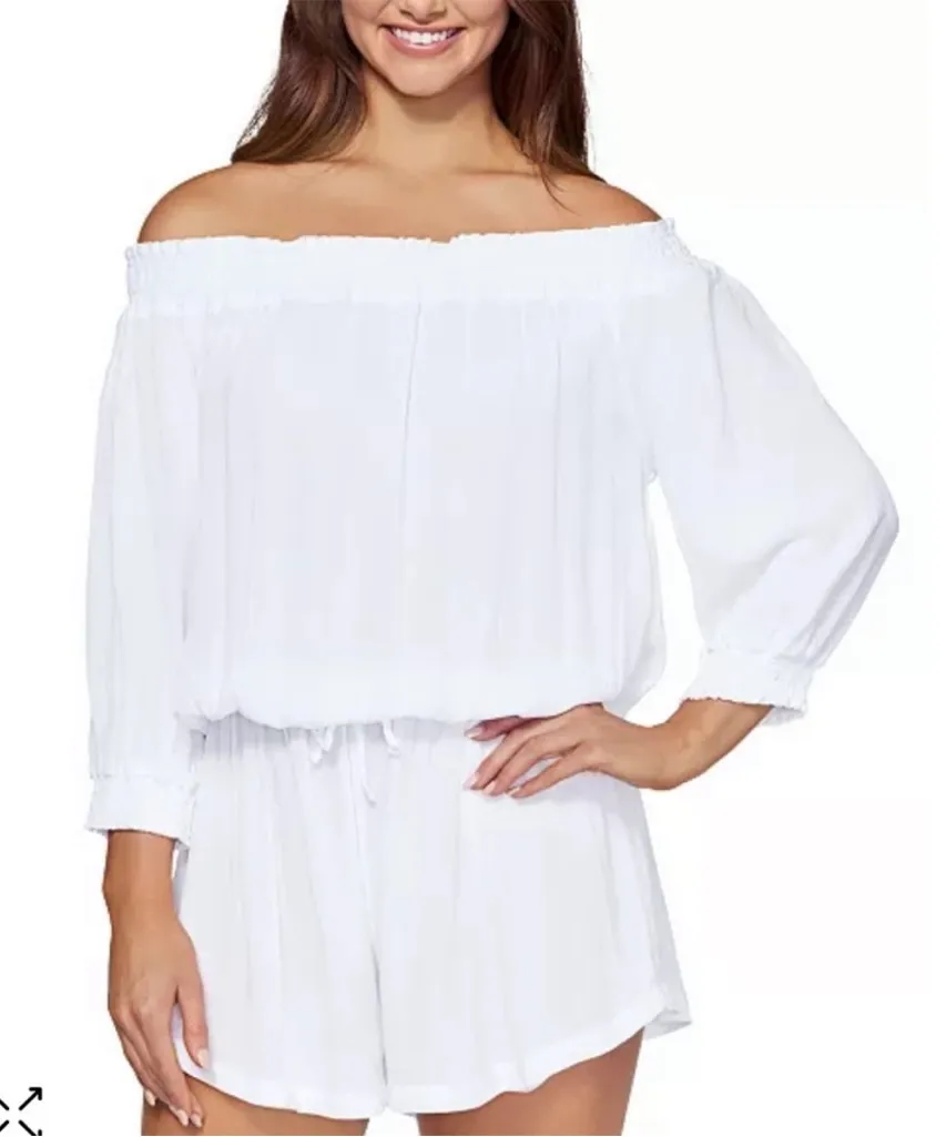 Raisins West Coast‎ Off-The-Shoulder Romper Cover-Up Swim Size Medium White NEW - $37 New With Tags - From Jamie