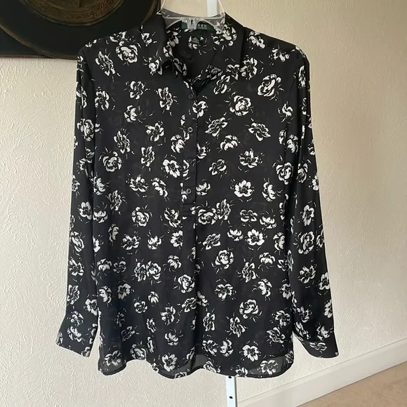 Selling this beautiful silky floral blouse from Ralph Lauren. Size M. Great condition. Beautiful print. Please review all pictures, there are a few pulls. 🌷Please review all pictures, all sales final. 🌷All my items come from a 100% smoke free/pet free environment.