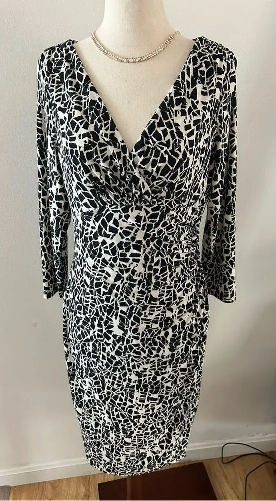 Ralph Lauren black and white work dress dinner dress size 6 below the knee n466