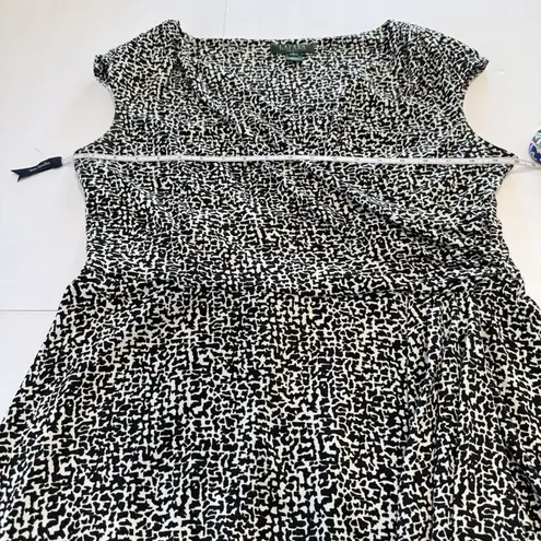 Surplice V neck Faux wrap Swing skirt Knee length Bodice lined, skirt unlined Polyester/elastane... Show more