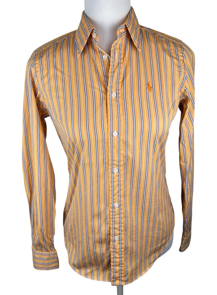 Ralph Lauren collared button down shirt. Orange with blue and white stripes. Size 4. - 100% cotton,... Show more