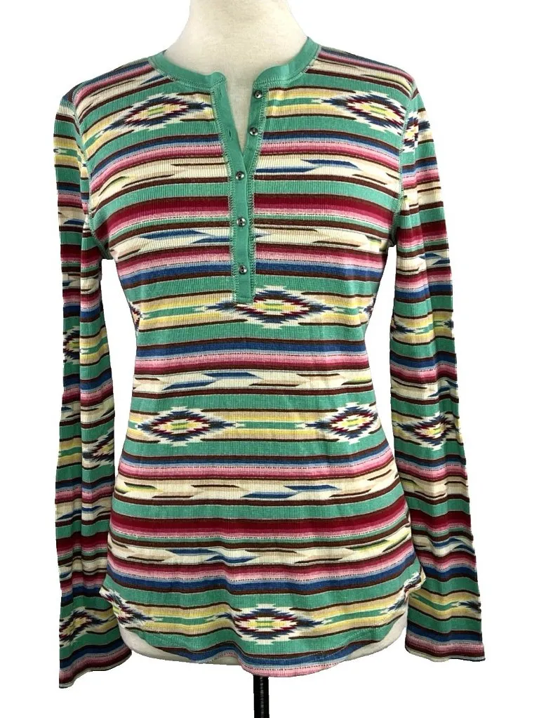 Ralph Lauren Chaps Sz M Aztec South Western Thermal Henley Top 100% Cotton Boho Green Size M - $35 New With Tags - From Diane