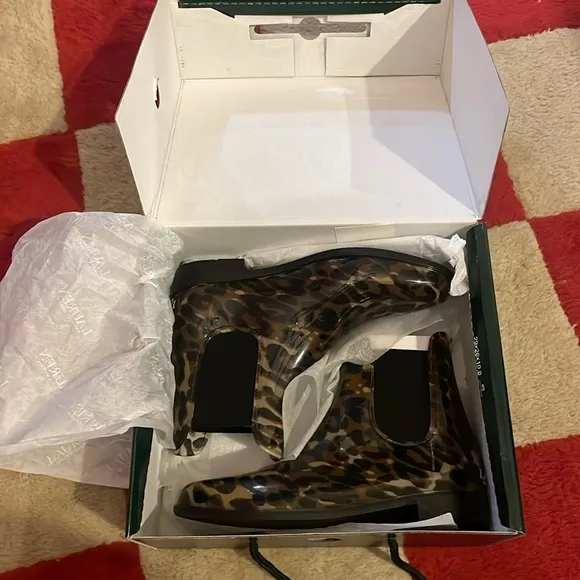 Comes with box. Brand new NWT size 8 B Ralph Lauren leopard rain boots