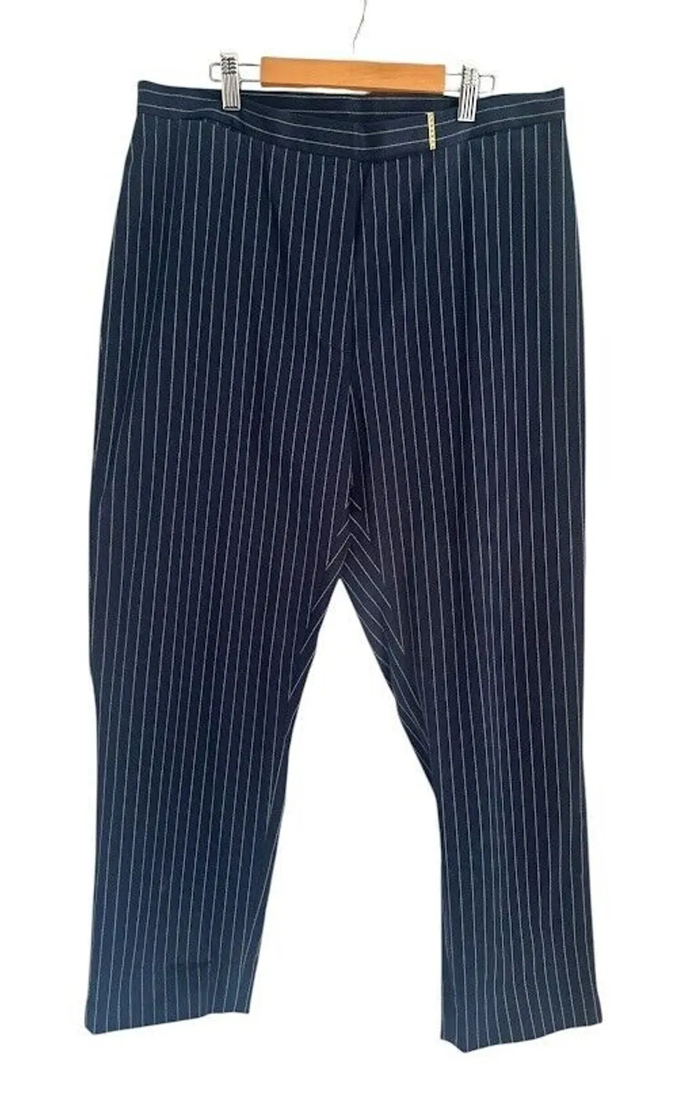 Ralph Lauren Dress Pants Womens Navy Blue Pin Stripe Old Money Gold Snap Womens Size 14 Stretch A... Show more