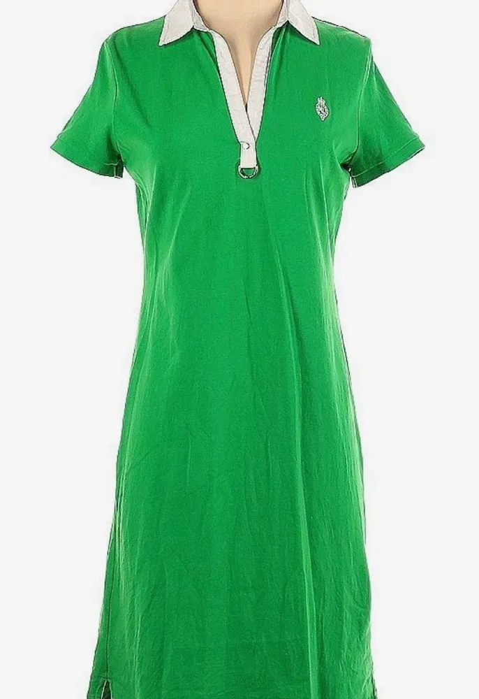 Chic green polo dress with a crisp white collar. Ideal for casual wear. Worn only once